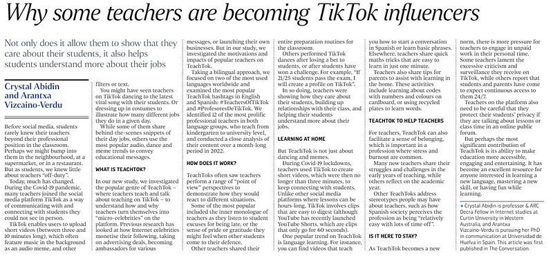 Article in The Straits Times · Why some teachers are becoming TikTok influencers