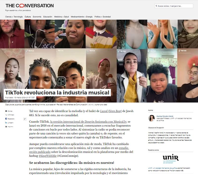 Article in The Conversation (Spain): TikTok revoluciona la industria musical